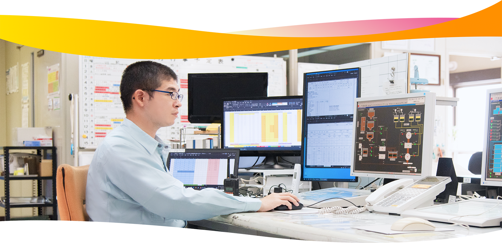 大和市北部浄化センターに常駐し、下水処理設備の点検と保守、必要資材の手配などを行っています。