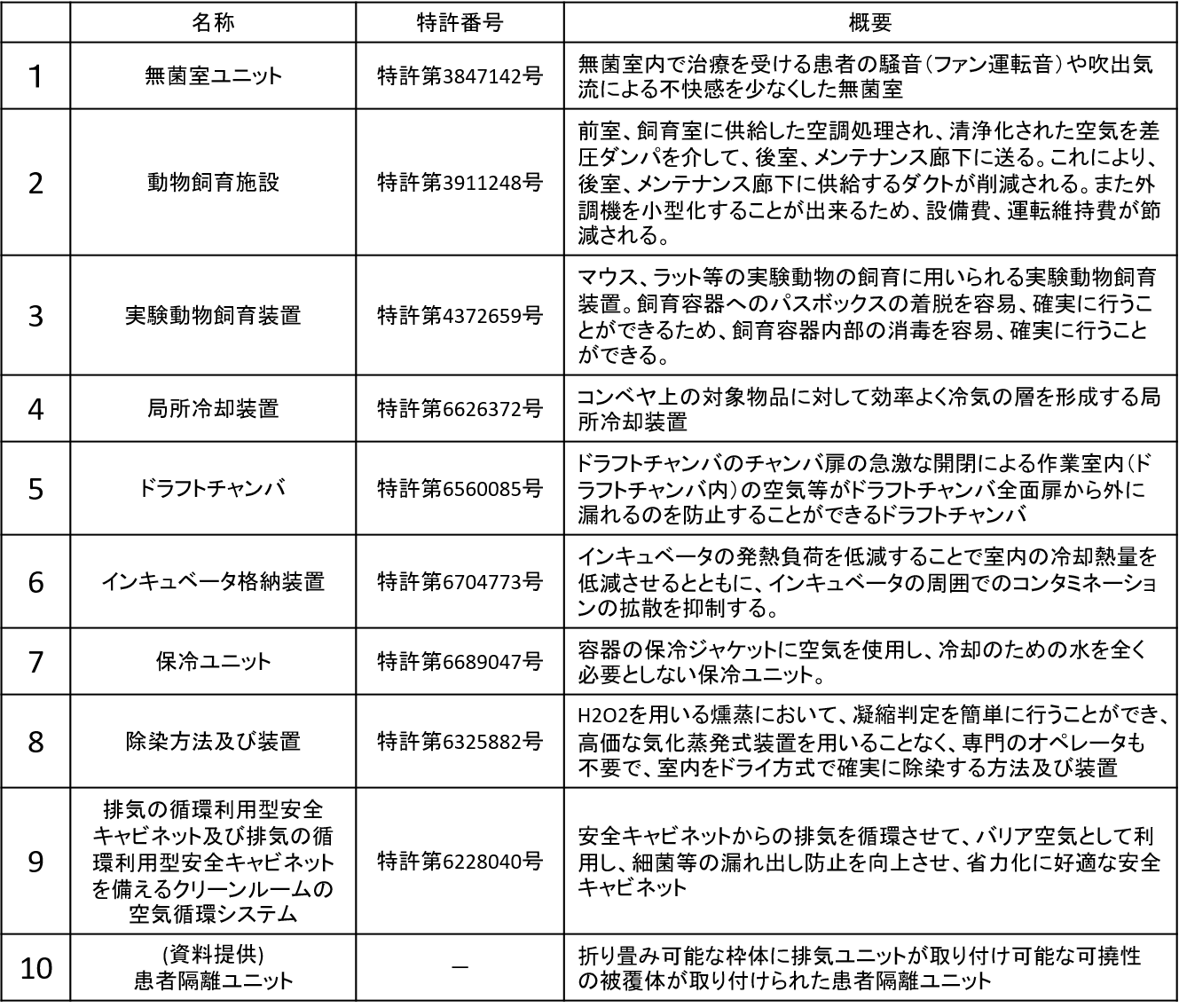 対象とした当社保有技術は、医療施設や研究施設での導入実績があり、感染防止対策に貢献すると考えられる技術です。開放している特許権の概要につきましては当社HPでも公開しています。