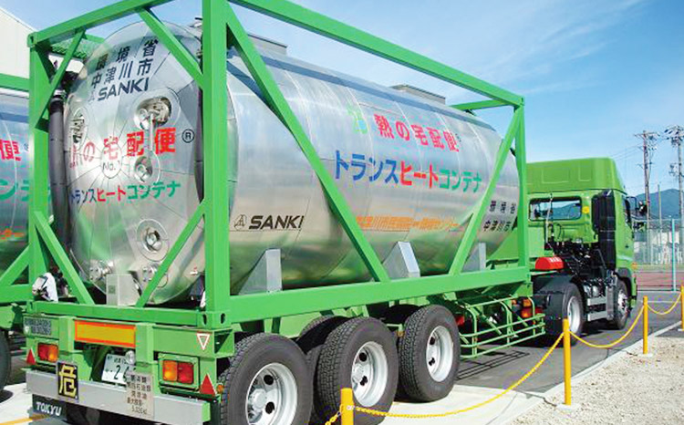 潜熱蓄熱材(PCM : Phase Change Material)をコンテナに充填し、トラック輸送により広範囲に熱を提供します。