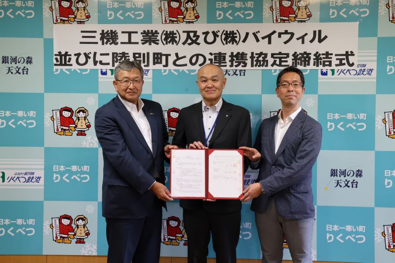 当社は2025年7月、カーボンニュートラル実現に寄与する地域林業支援のため、北海道陸別町と(株)バイウィルの3者で森林J-クレジット※に関する連携協定を締結しました。当社は、陸別町の森林J-クレジットを8年間購入することで、長期的な地域林業の支援を行っていきます。
