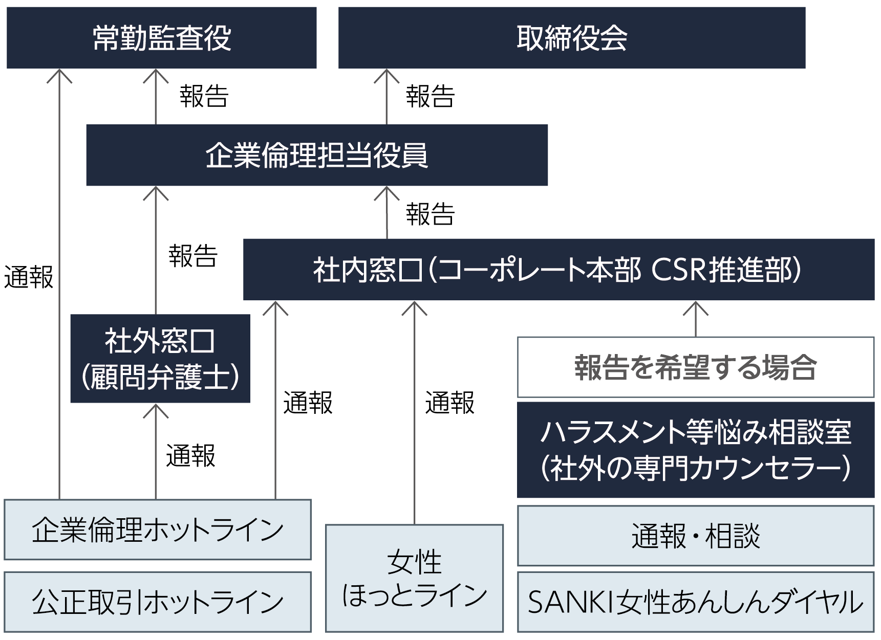 三機工業グループでは、当社グループに関係する方々からの通報や相談の窓口を設けて、速やかな問題解決を図っています。