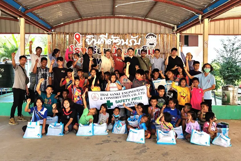 また、2024年度はタイ・カオヤイ国立公園への寄付活動を行いました。同公園は2005年に世界遺産に登録された広大な熱帯モンスーン林地帯で、希少な動植物の生息地としても知られています。今回、タイ三機は生物多様性に貢献する同公園を支援するため、タイ三機の社員・協力会社と三機工業役員、社員からの寄付によって購入したレンジャーのハイキング装備や保存食を寄付したほか、現地で植林作業やオフィスの天井・ドアの改修作業なども実施しました。
